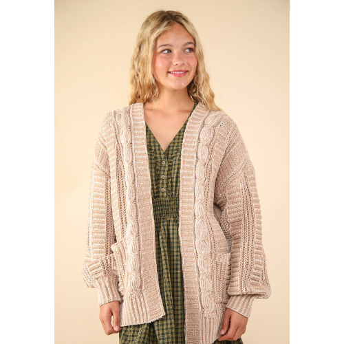 - Two Tone Knit Oversized Sweater Cardigan W/ Pockets - Drop Shoulder - Long Sleeve - Open Front - Soft, Comfy