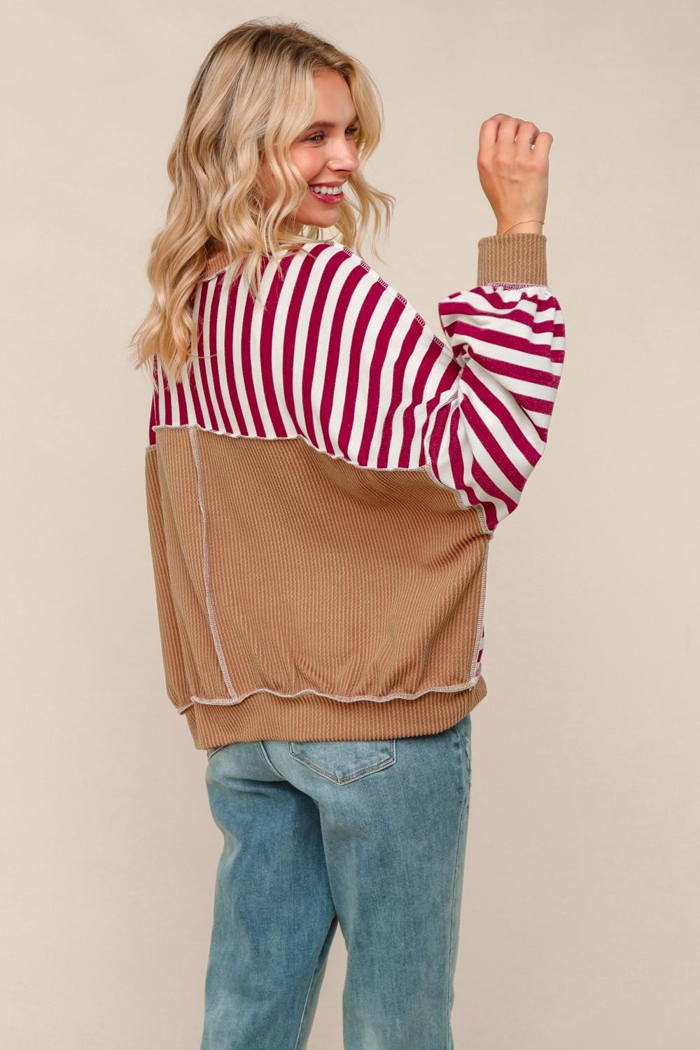 Easy, cozy, and cool — a color block stripe pullover with laid-back vibes.