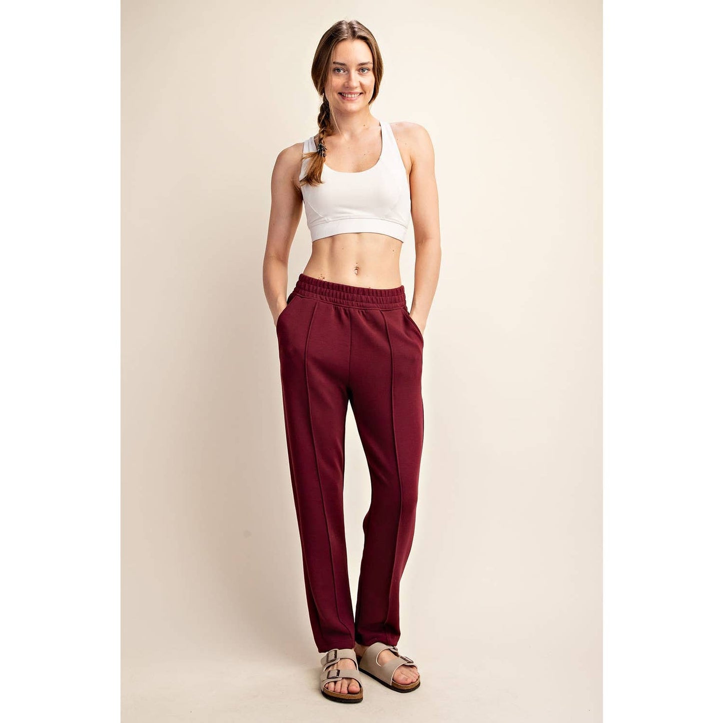 MODAL POLY SPAN SCUBA PINTUCK PANT: Mocha / S