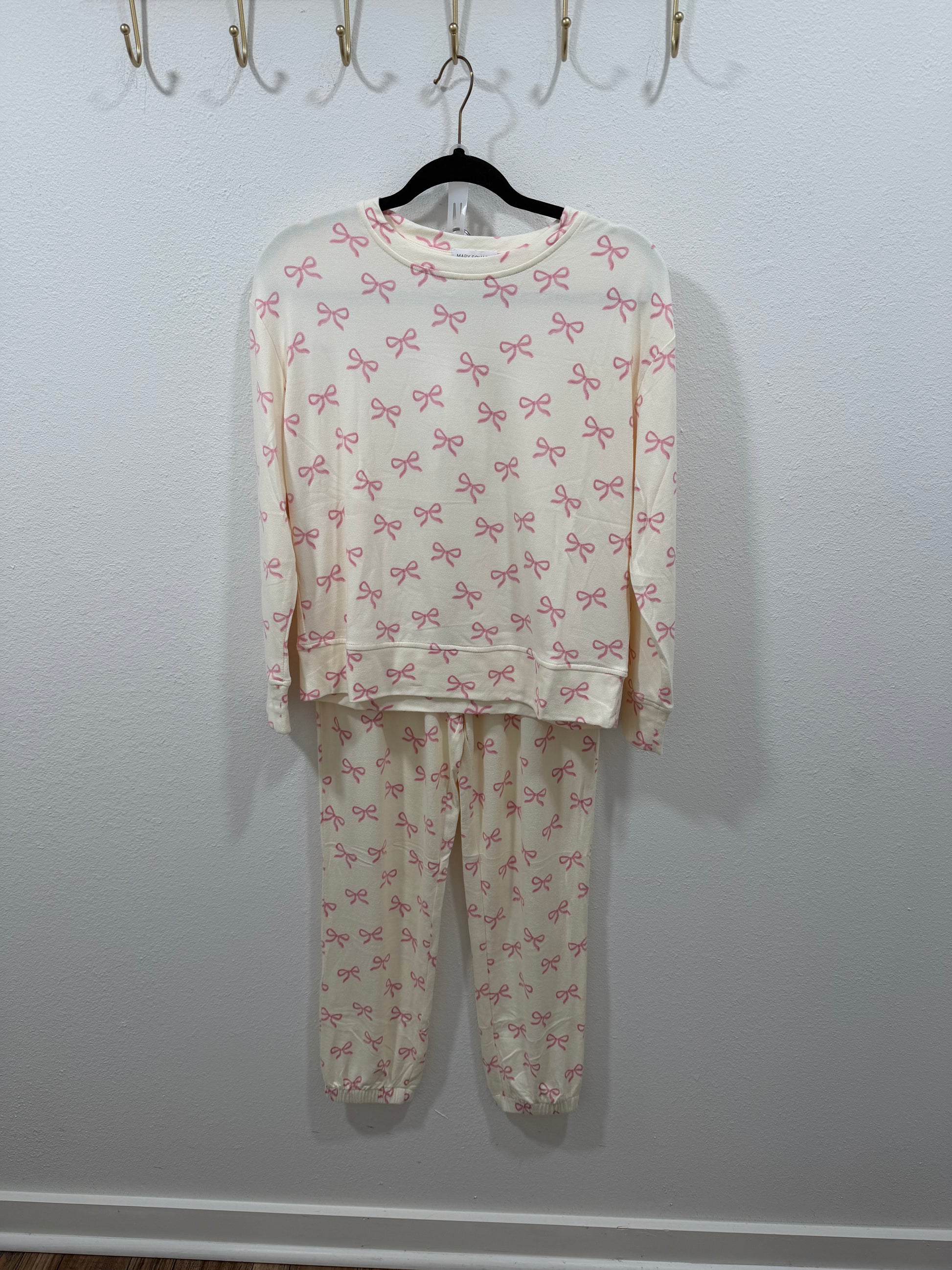 A super-soft matching set in the dreamiest cream tone, finished with sweet pink bow details for the perfect touch of girly charm. Cozy enough to lounge, cute enough to show off. 💕