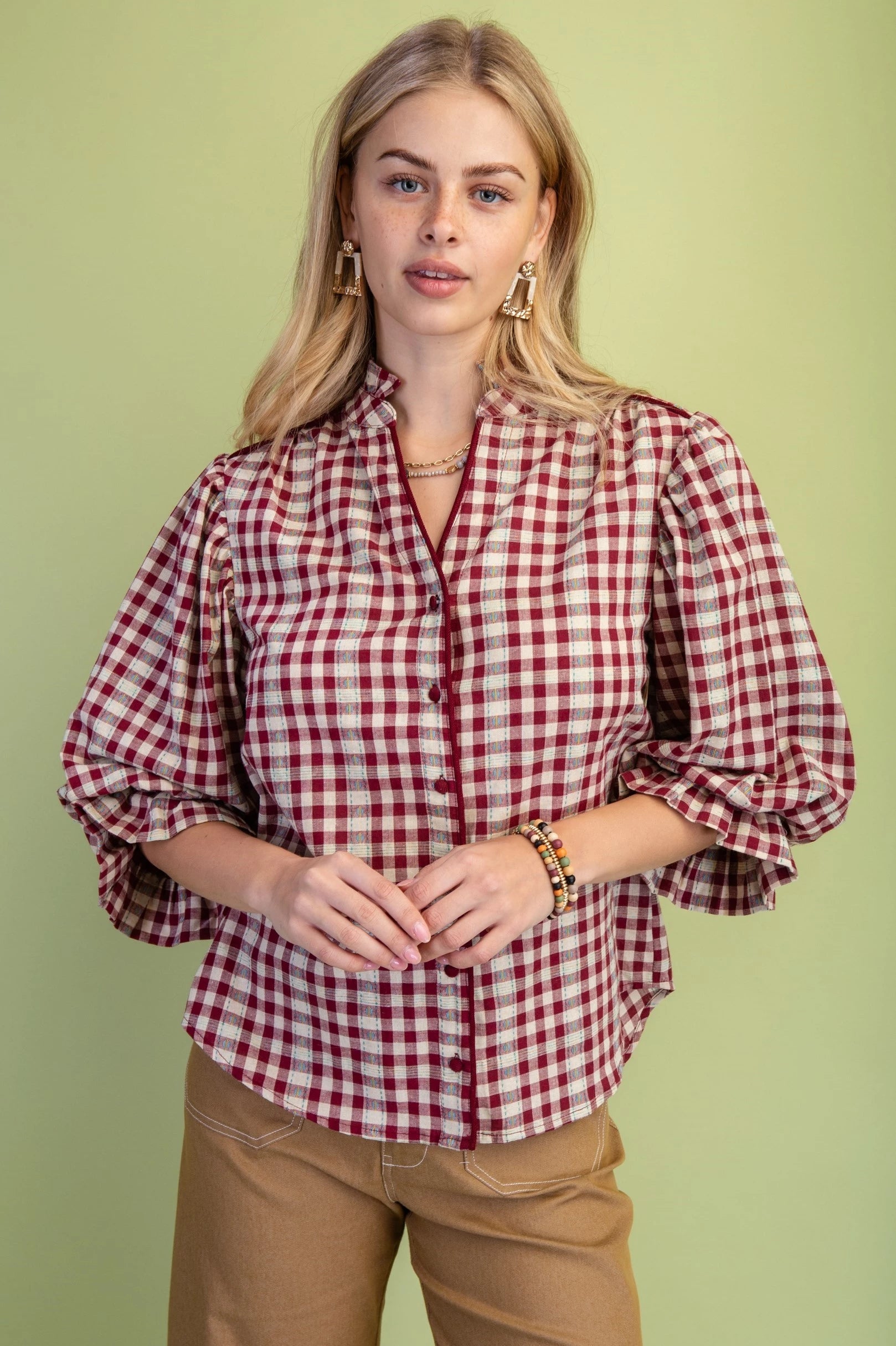 Breezy checks and soft gathers for a relaxed weekend feel.